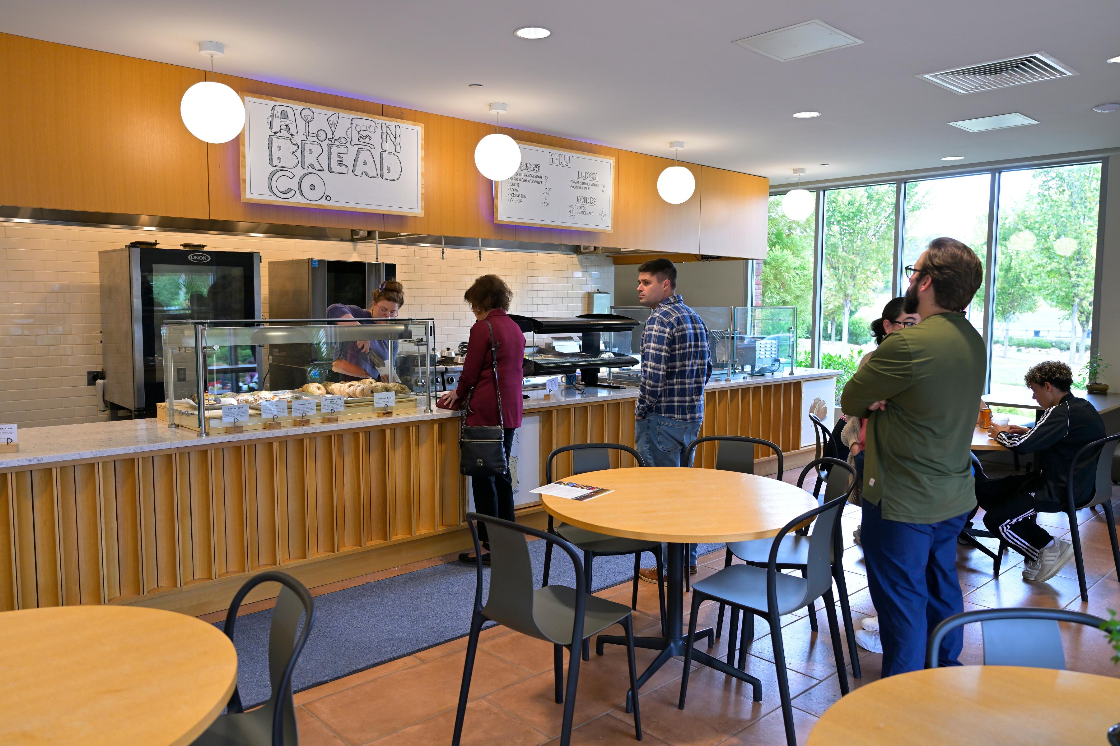 Located in the College Center, the 1877 Café offers fresh-baked breakfast and lunch offerings including sandwiches and quiches along with fresh-brewed coffee and tea. 1877 Café is run by Allen Bread Company.